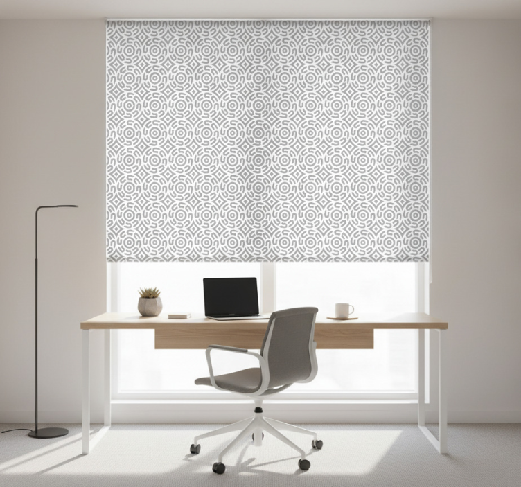 Rollo fenster büro mit weißem geometrischen muster