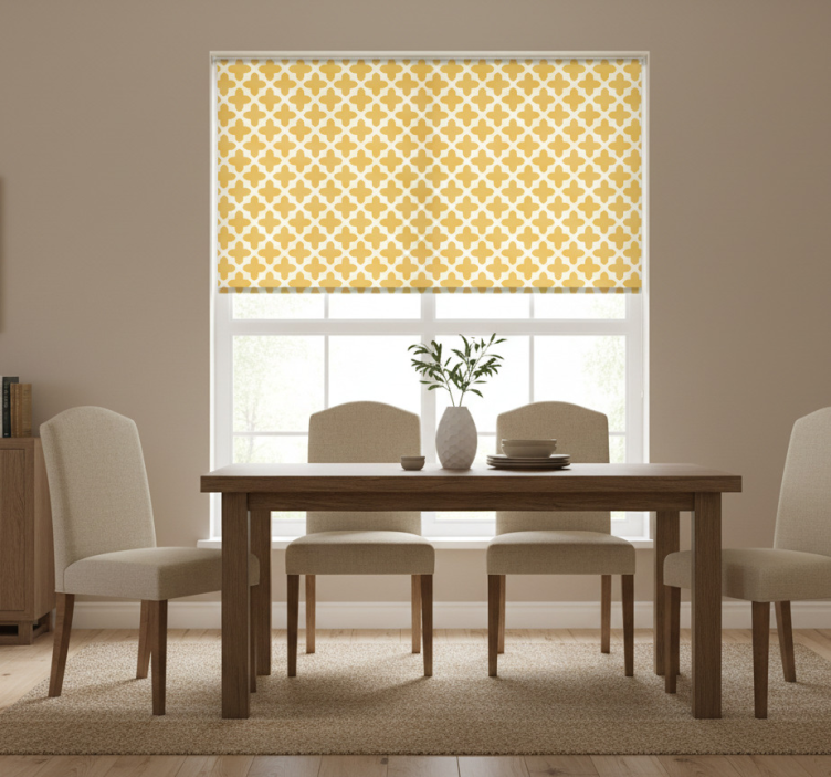 Referenz: E8209Das Rollo Fenster Gelb mit arabeskenmuster vereint Eleganz und Funktionalität in einem atemberaubenden Design. Die lebendige gelbe Farbe bringt Frische und Wärme in jeden Raum, während das kunstvolle arabeskenmuster eine kulturelle Tiefe und eine einzigartige Ästhetik hinzufügt. Dieses Rollo wurde nicht nur für seine Schönheit entworfen, sondern bietet auch praktische Vorteile. Es schützt Ihr Zuhause effektiv vor direkter Sonneneinstrahlung und sorgt gleichzeitig für die gewünschte Privatsphäre. Mit einer einfachen Montage und der Möglichkeit zur individuellen Anpassung stellt es eine perfekte Lösung für jede Wohnsituation dar!