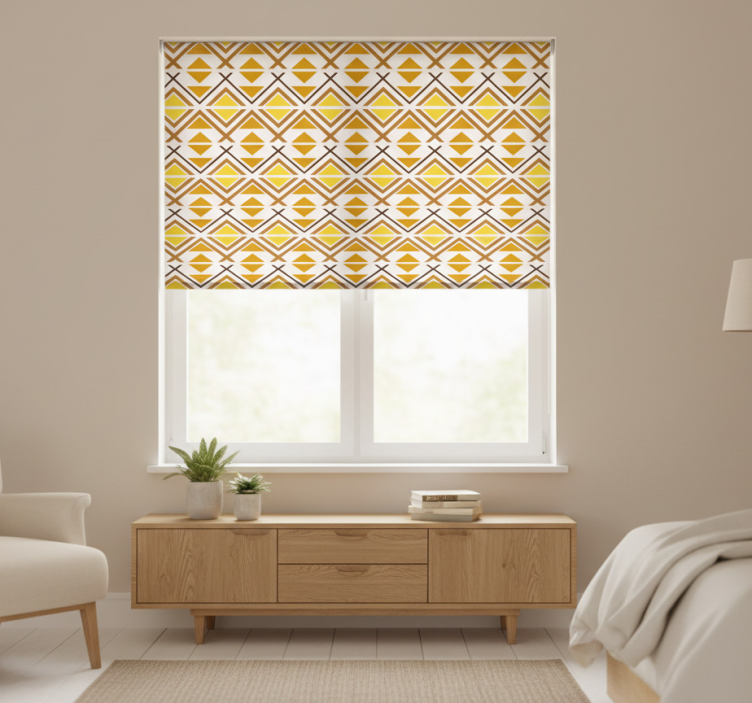 Das Rollo Fenster Gelb mit geometrischem Grafikdesign ist eine hervorragende Wahl für alle, die ihr Zuhause aufwerten möchten! Mit seinem modernen Stil und der Möglichkeit, das Licht und die Privatsphäre nach Ihren Wünschen zu regulieren, wird dieses Rollo schnell zum Lieblingsstück in Ihrem Raum. Es bietet nicht nur Schutz vor unerwünschtem Sonnenlicht, sondern trägt auch zur Sicherheit bei, indem es Ihnen ermöglicht, zu sehen, ohne gesehen zu werden. Verleihen Sie Ihrem Raum mit diesem einzigartigen Rollo eine fröhliche Note und schaffen Sie eine einladende Atmosphäre!