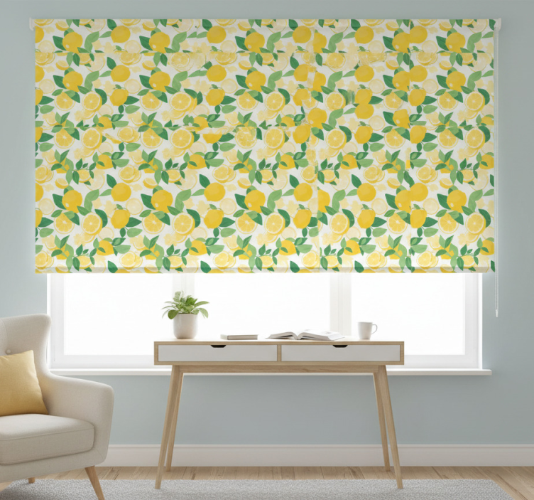 Rollo fenster gelb mit zitronenscheiben-muster