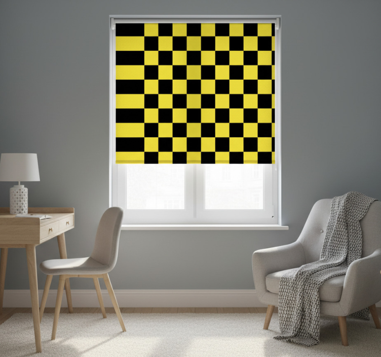 Rollo fenster gelb schachbrett in gelb und schwarz