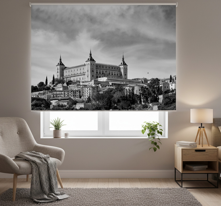 Referenz: E8812Das Rollo Fenster Grau Alcázar von Toledo besticht durch sein modernes und stilvolles Design. Mit einer eleganten grauen Farbgebung fügt es sich nahtlos in jede Wohnumgebung ein und sorgt für eine harmonische Atmosphäre. Die Kombination aus hochwertigem Material und durchdachten Funktionen macht es zu einem Must-Have für jedes Zuhause. Dieses Rollo schützt den Raum vor direkter Sonneneinstrahlung, bietet Privatsphäre im abgesenkten Zustand und lässt sich spielend leicht in der Höhe regulieren. Darüber hinaus verbessert es die Dekoration des Raumes und sorgt für eine angenehme Raumtemperatur.