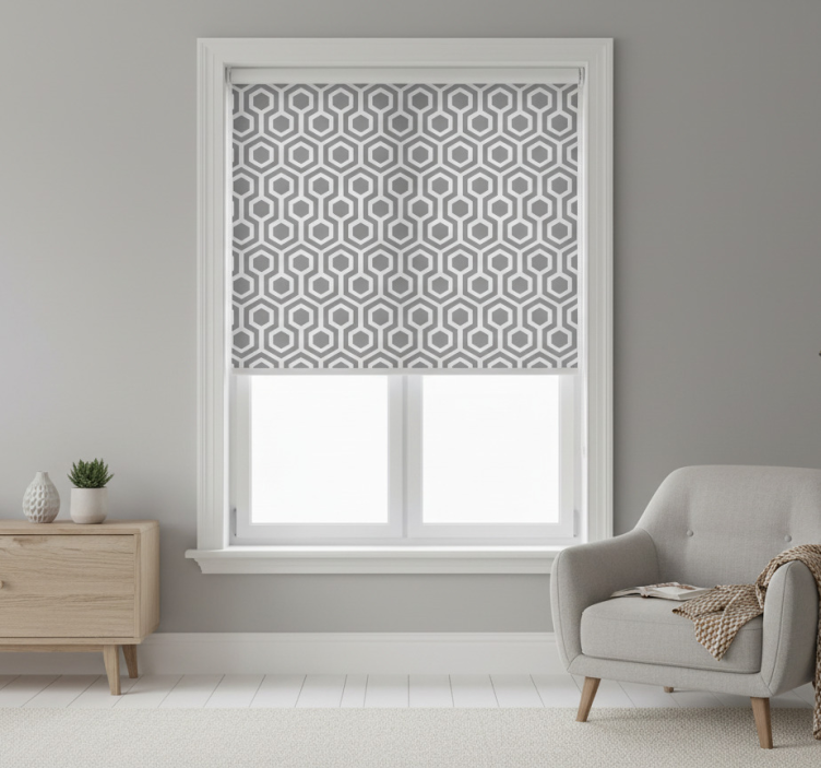 Das Rollo Fenster Grau mit hexagonalem graumuster ist die perfekte Wahl für jeden Raum. Es schützt nicht nur vor direkter Sonneneinstrahlung, sondern bietet auch eine hervorragende Privatsphäre im abgesenkten Zustand. Mit diesem Rollo können Sie die Raumtemperatur leicht regulieren und gleichzeitig für Sicherheit sorgen – Sie können sehen, ohne gesehen zu werden! Darüber hinaus verbessert es die Raumdekoration und bringt Stil in Ihr Zuhause! Mit 100 % anpassbaren Maßen und der Möglichkeit, aus drei verschiedenen Texturen zu wählen, finden Sie garantiert die ideale Lösung für Ihre individuellen Bedürfnisse!