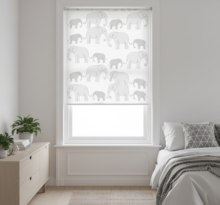 Referenz: E8082Entdecken Sie das elegante Rollo Fenster Grau mit minimalistischen Elefanten, das jedem Raum eine stilvolle Note verleiht. Das grafisch ansprechende Design kombiniert sanfte Grautöne mit einer charmanten Elefantenmotivik, die sowohl modern als auch zeitlos wirkt. Dieses Rollo ist ideal für Liebhaber von minimalistischem Stil und sorgt dafür, dass Ihr Zuhause nicht nur gut aussieht, sondern auch funktional bleibt.