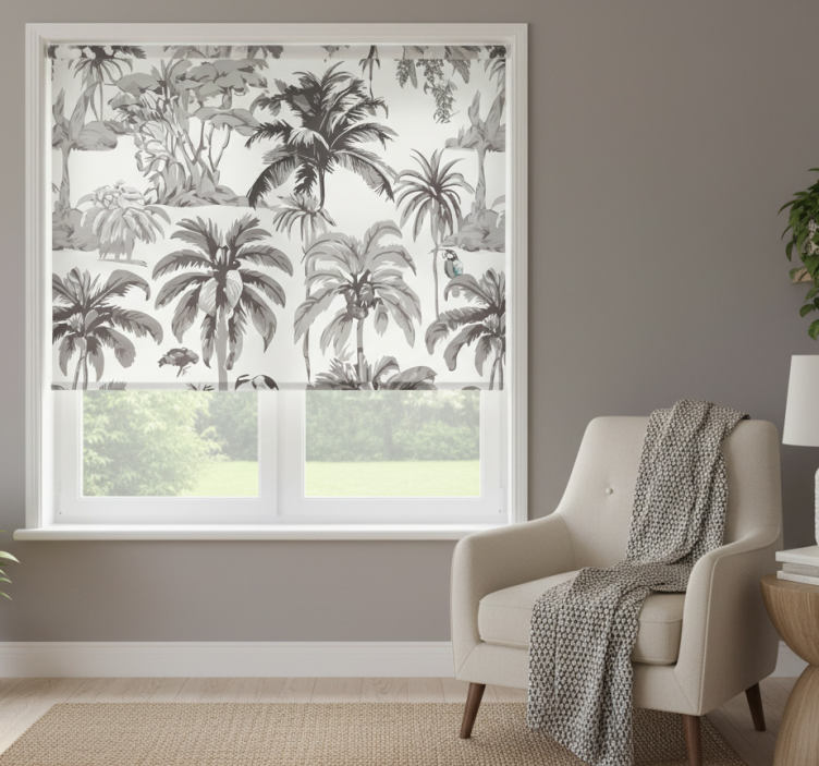 Rollo fenster grau mit palmenmotiv
