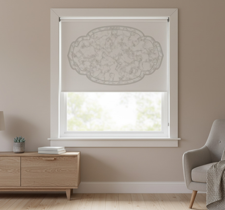 Rollo fenster grau mit weißem marmordesign