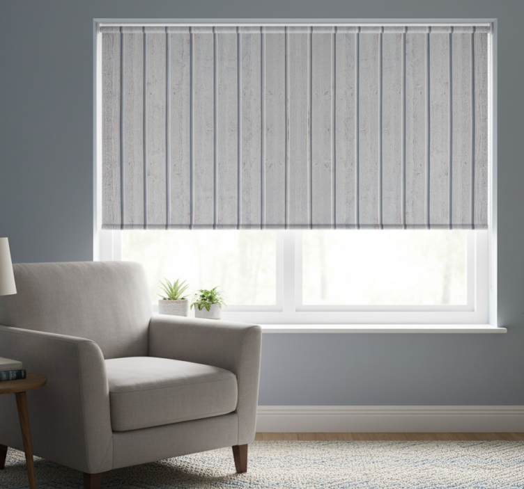 Rollo fenster grau mit weißen holzlatten