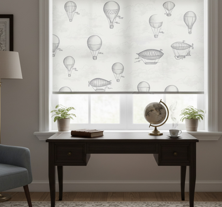 Referenz: E8079Erleben Sie mit unserem Rollo Fenster Grau Vintage Himmel und Luftschiffe ein einzigartiges Design, das Ihrem Raum einen nostalgischen Charme verleiht. Das stilvolle Muster kombiniert graue Töne mit einem verspielten Motiv von Luftschiffen und Wolken, das eine träumerische Atmosphäre schafft. Es ist nicht nur ein Fensterdekorationselement, sondern auch ein praktisches Produkt, das Ihre Wohnräume aufwertet und gleichzeitig Licht und Privatsphäre reguliert.