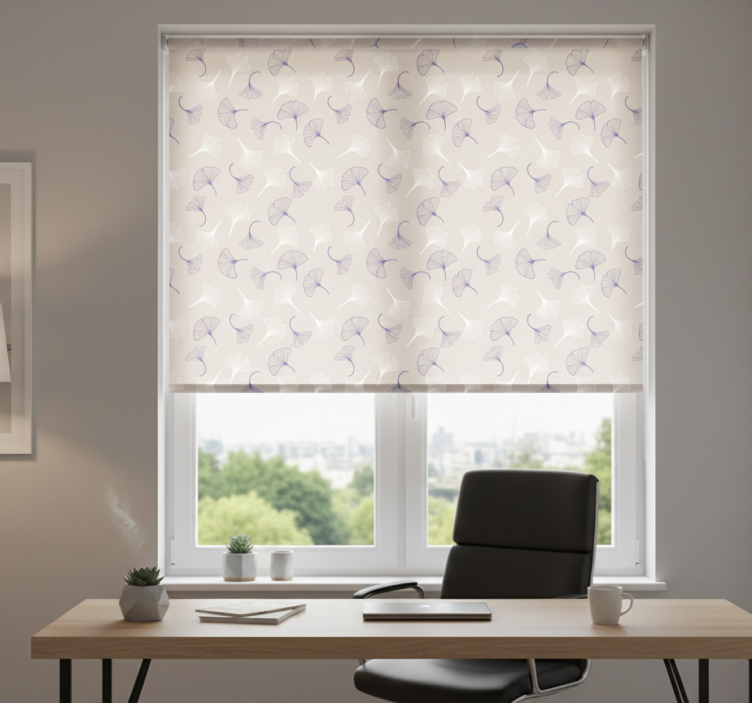 Rollo fenster home office ginkgo blätter creme