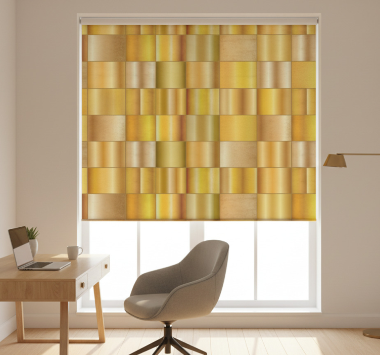 Referenz: E7301Das Rollo Fenster Home Office goldgelbe Blöcke begeistert mit einem einzigartigen Design, das durch seine auffälligen goldgelben Blöcke besticht. Dieses grafische Element bringt frischen Wind in Ihr Home Office und verleiht dem Raum einen modernen und einladenden Look. Die Kombination aus Funktionalität und Ästhetik sorgt dafür, dass Ihr Arbeitsbereich nicht nur praktisch, sondern auch inspirierend ist!