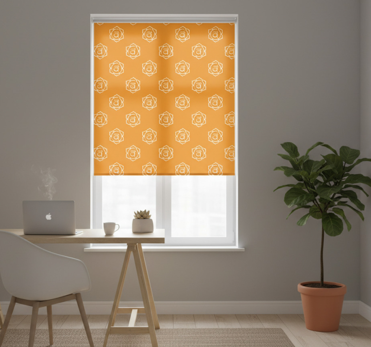 Rollo fenster home office mit schönem sakralchakra-symbol