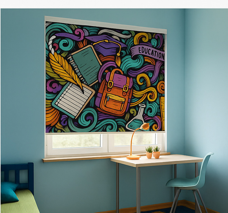 Das Rollo Fenster Jugendzimmer bunte abstrakte objekte bietet Ihnen die perfekte Kombination aus Funktionalität und Stil. Es schützt nicht nur vor direkter Sonneneinstrahlung, sondern sorgt auch für eine angenehme Privatsphäre im Raum. Mit seiner einzigartigen Gestaltung verbessert es die Dekoration Ihres Zimmers und schafft eine inspirierende Umgebung für kreative Köpfe. Wählen Sie aus verschiedenen Texturen, um die optimale Lichtmenge und Privatsphäre zu erreichen und verleihen Sie Ihrem Jugendzimmer einen frischen Look!