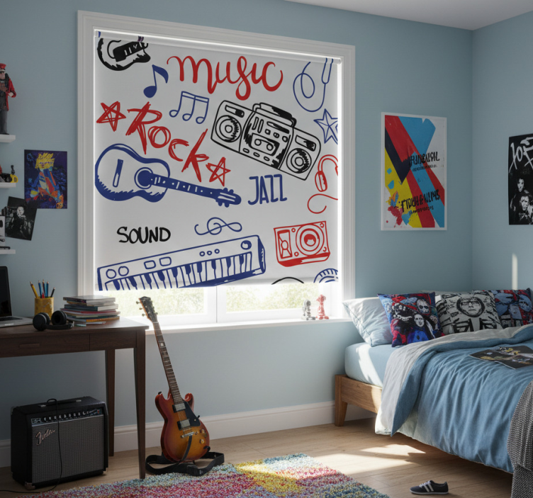 Referenz: E7592Entdecken Sie das Rollo Fenster Jugendzimmer für Musikinstrumente, das in einem modernen und kreativen Design gestaltet ist. Die harmonischen Farben und die einzigartigen Muster verleihen jedem Raum eine lebendige Atmosphäre. Mit dieser stilvollen Fensterdekoration wird Ihr Jugendzimmer nicht nur ein Rückzugsort, sondern auch ein inspirierender Raum für musikalische Entfaltung!