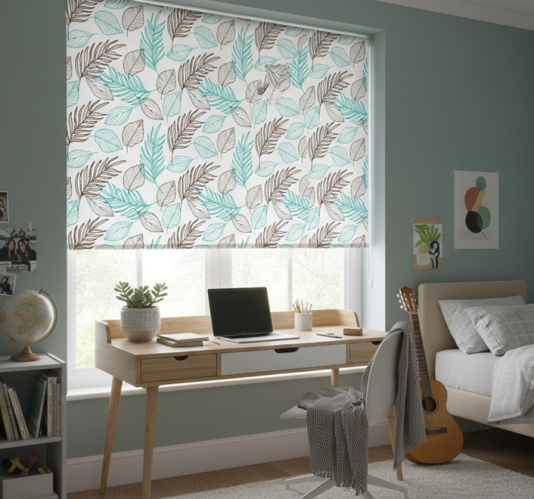 Rollo fenster jugendzimmer grüne blätter