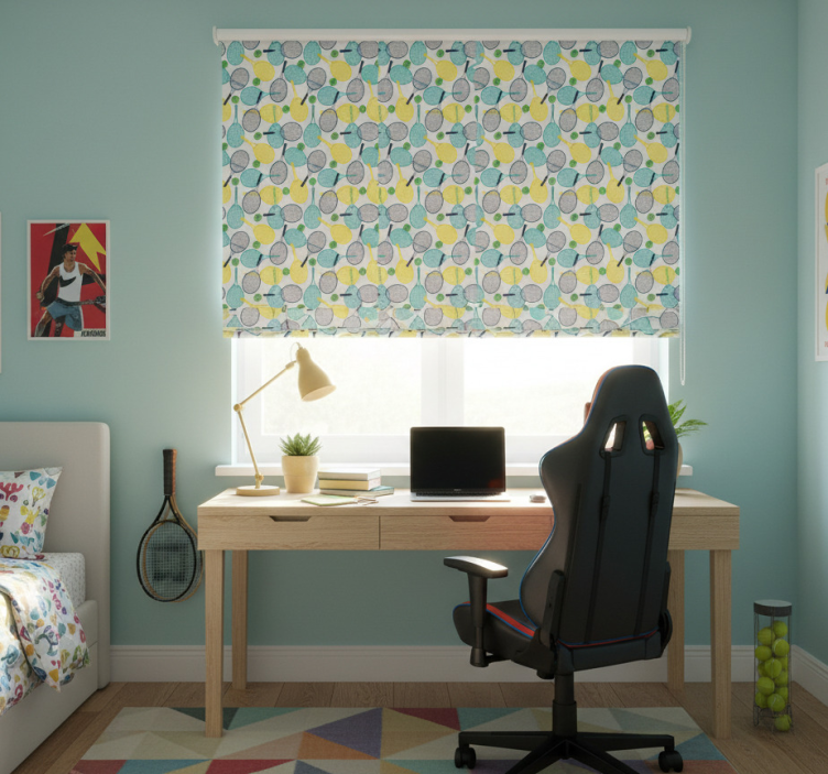 Referenz: E7485Entdecken Sie das Rollo Fenster Jugendzimmer mit bunten Schläger-Mustern, das mit seinem fröhlichen und lebendigen Design jeden Raum zum Strahlen bringt. Die bunten Schläger-Muster sorgen für eine spielerische Atmosphäre und machen das Rollo zum perfekten Accessoire für jedes Jugendzimmer. Dieses Rollo zeichnet sich durch eine einfache Montage mit nur zwei Klicks aus, sodass Sie im Handumdrehen das perfekte Ambiente schaffen können. Zudem lässt sich das Material problemlos reinigen und sorgt dafür, dass Ihr Fenster stets gut aussieht!