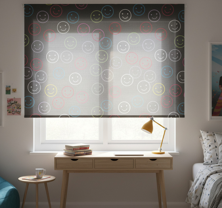 Rollo fenster jugendzimmer mit bunten smiley-gesichtern