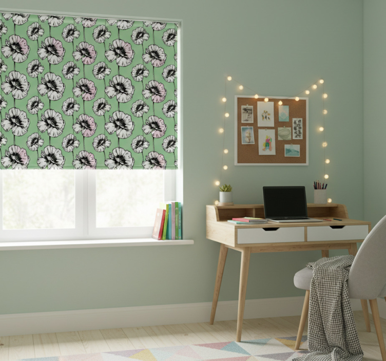 Rollo fenster jugendzimmer mit gemaltem gänseblümchenmuster