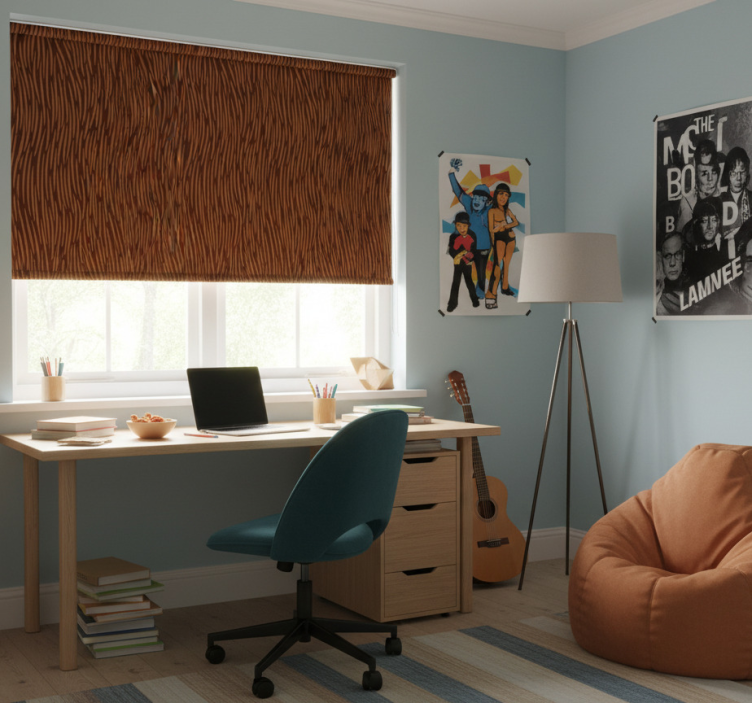 Rollo fenster jugendzimmer mit haarigem charakter-muster