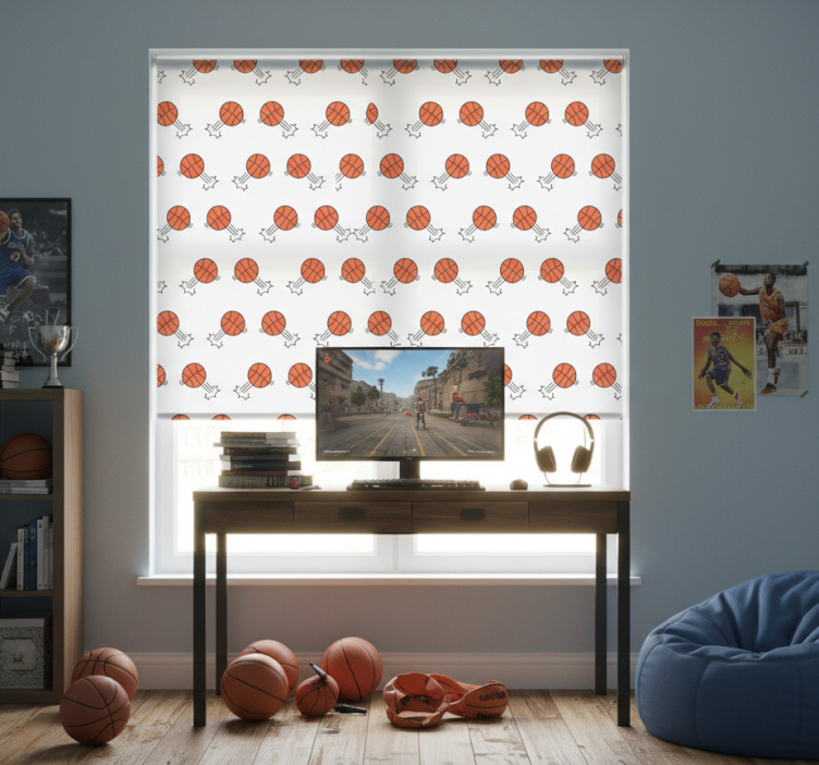 Rollo fenster jugendzimmer mit handgezeichneten basketballs