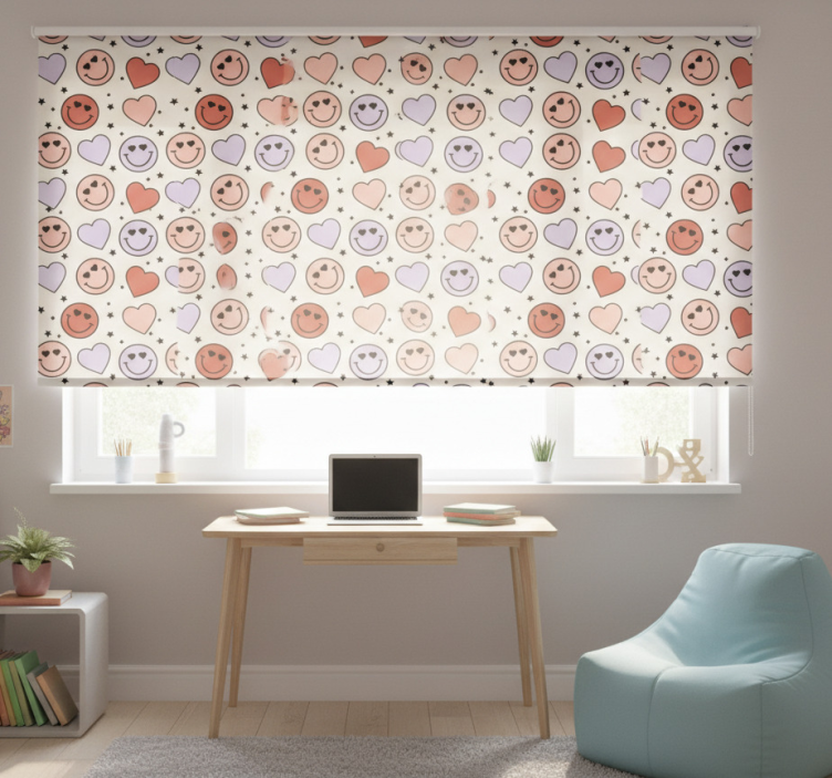 Rollo fenster jugendzimmer mit herzen und smileys