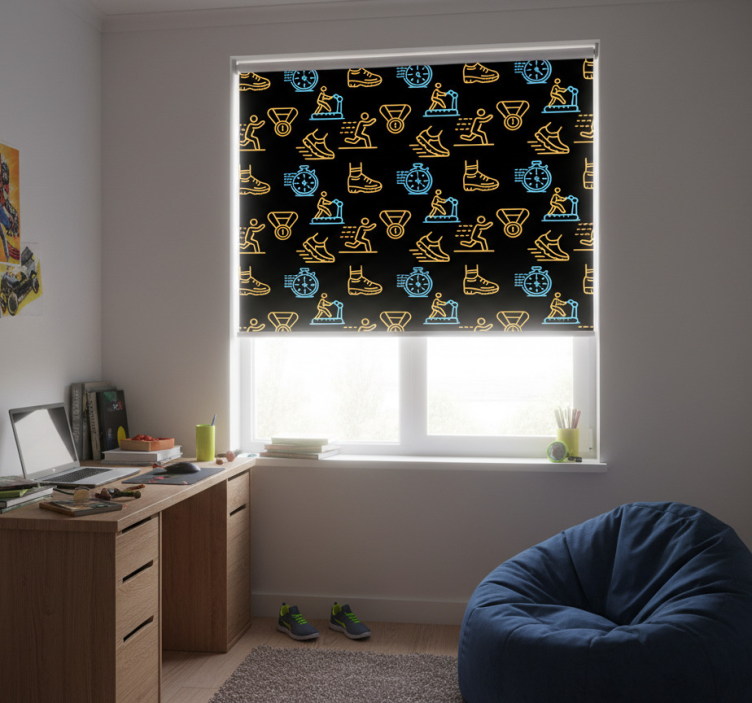 Rollo fenster jugendzimmer mit leuchtenden neon-icons