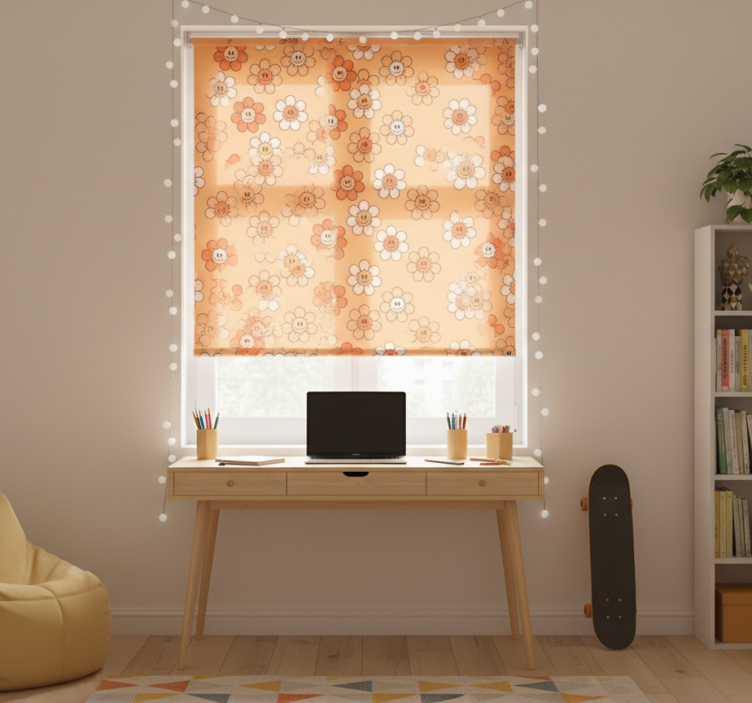 Rollo fenster jugendzimmer mit orangenen smiley-motiven