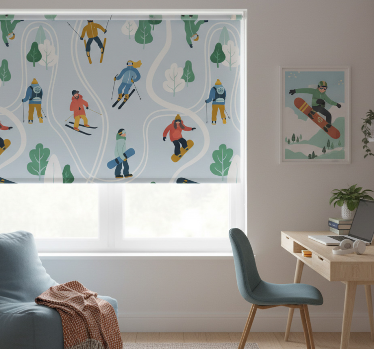 Rollo fenster jugendzimmer blauer skisport