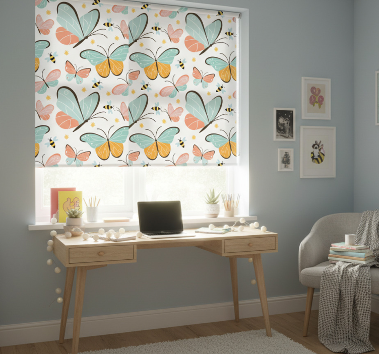 Rollo fenster jugendzimmer schmetterlinge und bienen