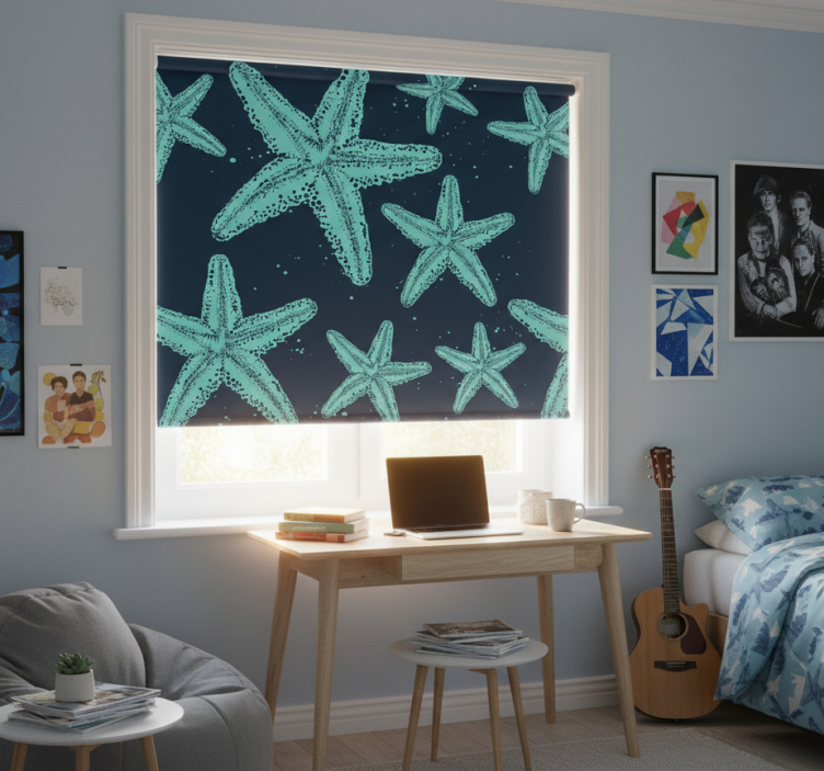Rollo fenster jugendzimmer seestern blautöne