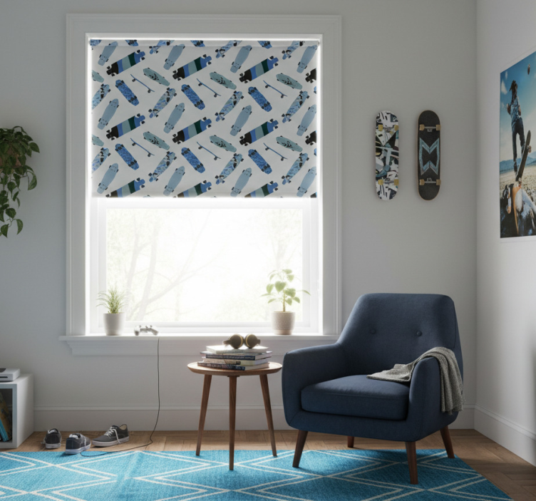 Referenz: E7562Das Rollo Fenster Jugendzimmer Skateboards Design ist eine aufregende Kombination aus Funktionalität und modernem Stil. Mit einem lebhaften Skateboard-Motiv bringt es einen Hauch von Freiheit und Abenteuer in jeden Raum. Die klaren Linien und die ansprechenden Farben sorgen dafür, dass es sowohl bei Jugendlichen als auch bei Erwachsenen beliebt ist. Dieses Rollo ist nicht nur ein Sichtschutz, sondern auch eine kreative Möglichkeit, das Zimmer zu gestalten und eine positive Atmosphäre zu schaffen!