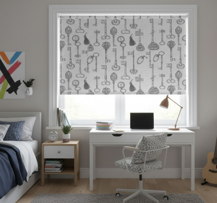 Referenz: E7554Entdecken Sie unser Rollo Fenster Jugendzimmer verschiedene Designs, das nicht nur funktional, sondern auch ästhetisch ansprechend ist! Jedes Design strahlt Kreativität aus und bietet eine Vielfalt an Farben und Mustern, um jedem Jugendzimmer einen einzigartigen Charakter zu verleihen. Das Rollo schützt den Raum vor direkter Sonneneinstrahlung, bietet Privatsphäre und lässt sich dank der einfachen Montage mit nur zwei Klicks mühelos anbringen. Zudem ist es leicht zu reinigen und sorgt für eine angenehme Raumtemperatur.