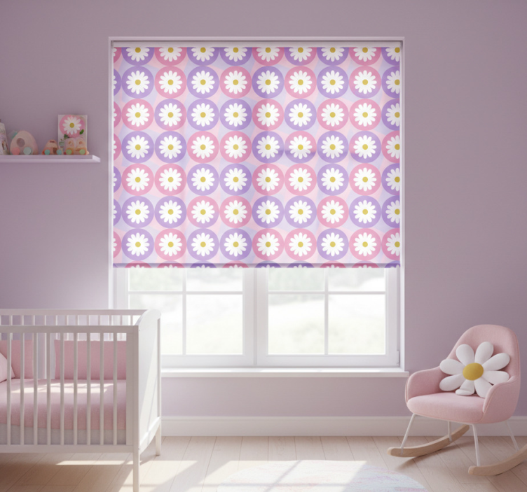 Rollo fenster kinderzimmer lila pink gänseblümchen muster