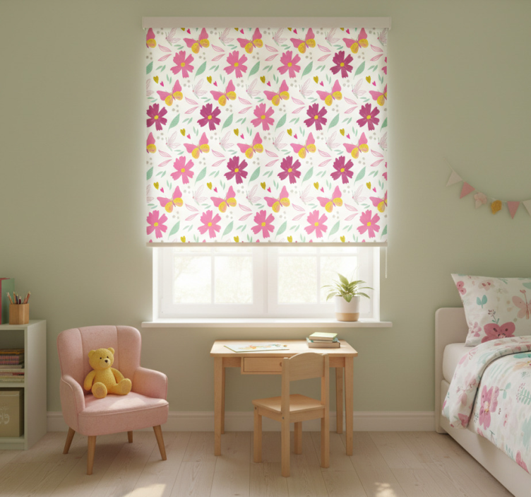 Rollo fenster kinderzimmer mit blumen und schmetterlingen