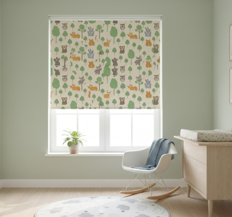 Rollo fenster kinderzimmer mit lustigen tieren und bäumen
