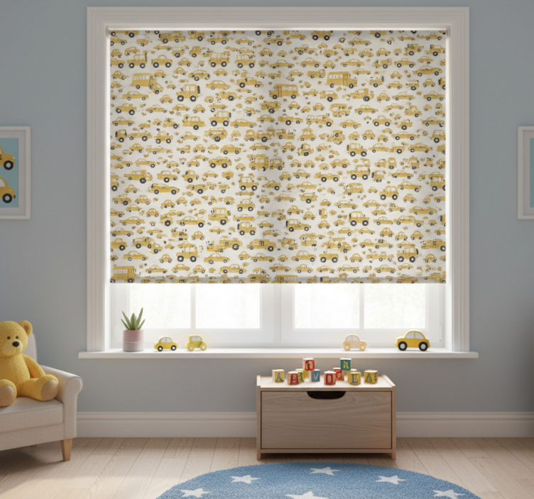 Rollo fenster kinderzimmer mit niedlichem gelben auto