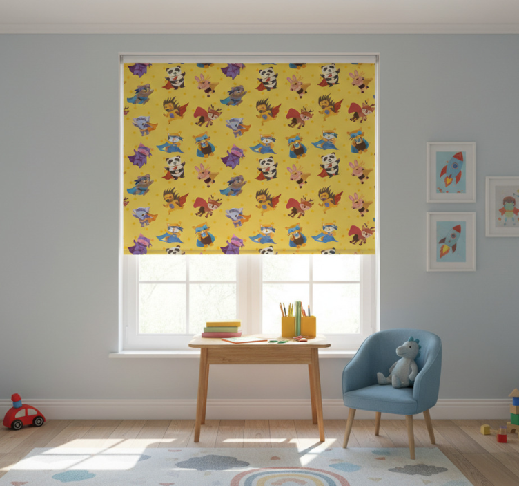 Rollo fenster kinderzimmer mit superhelden haustieren muster