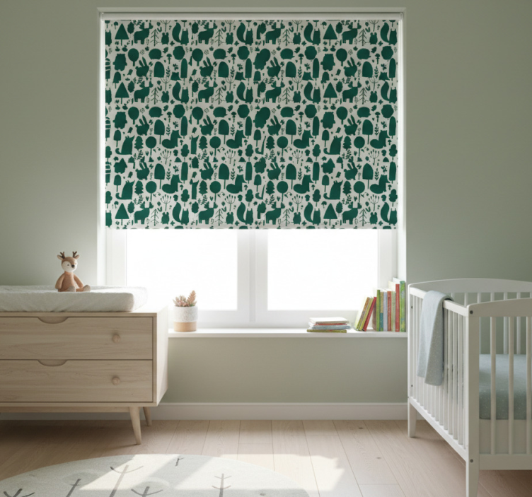 Rollo fenster kinderzimmer mit waldtier-silhouetten