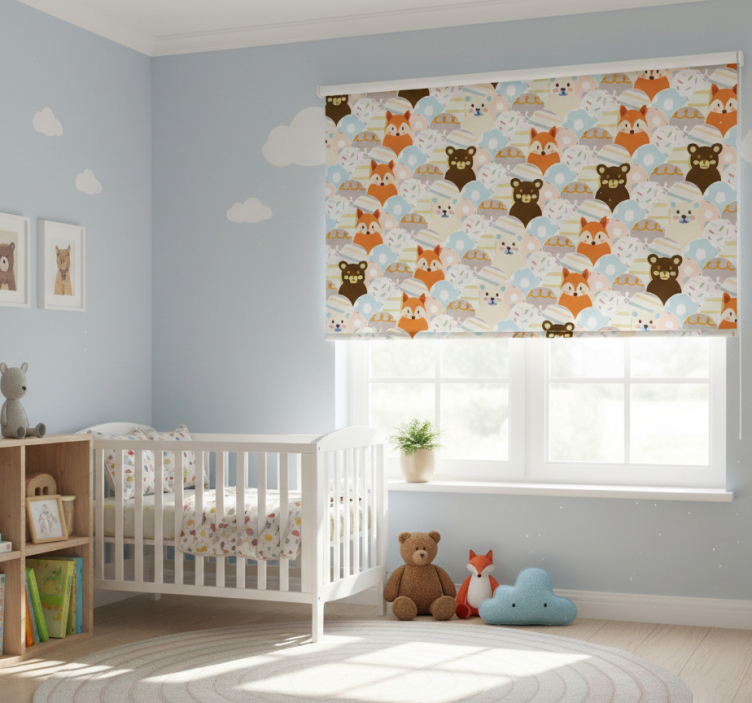 Rollo fenster kinderzimmer patchwork bär und fuchs design