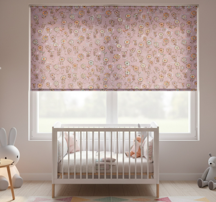 Rollo fenster kinderzimmer schwedisches rosa blumenmuster