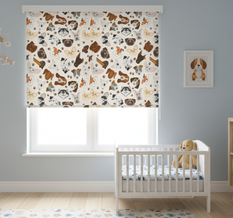 Rollo fenster kinderzimmer süßes welpen und hundemuster
