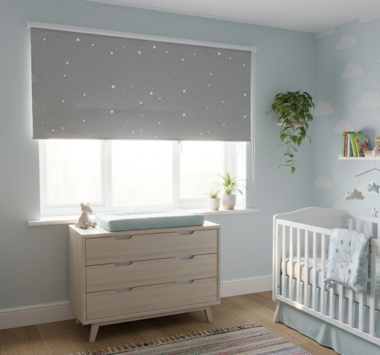 Rollo fenster kinderzimmer weiße sterne auf grau