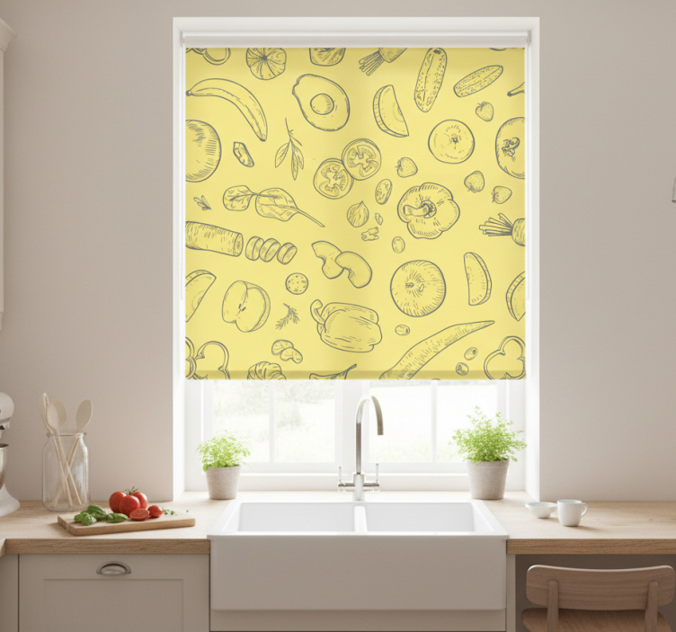Rollo fenster küche set aus bunten früchten und gemüse