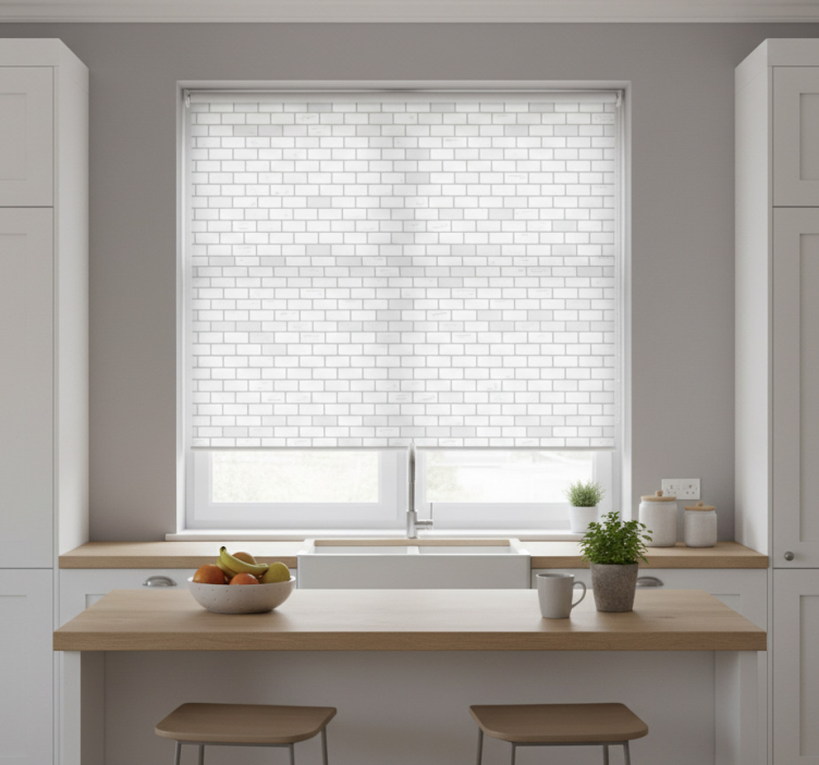 Rollo fenster küche im eleganten ziegelmuster