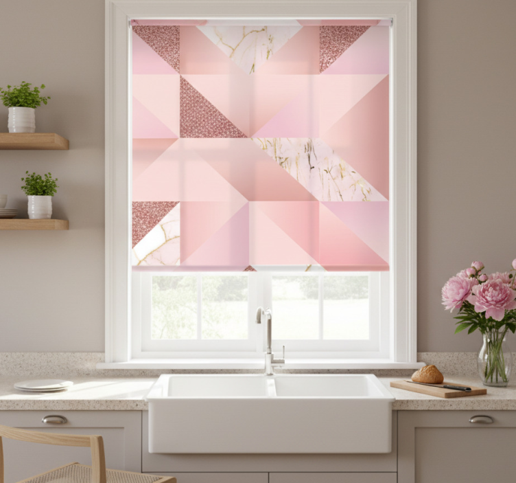 Rollo fenster küche in pinkgoldenem marmor