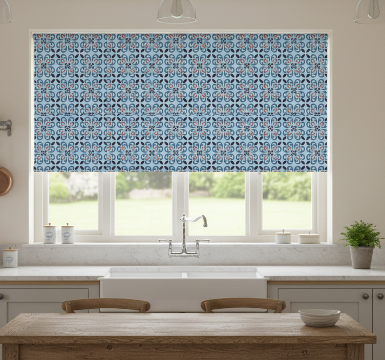 Das Rollo Fenster Küche rollo fenster küche mit babyblauen runden fliesen ist die perfekte Wahl für alle, die Wert auf Stil und Funktion legen! Es schützt Ihre Küche vor direkter Sonneneinstrahlung und sorgt gleichzeitig für eine angenehme Raumtemperatur. Mit seiner einfachen Handhabung und der Möglichkeit, das Licht zu regulieren, bietet es Ihnen die Freiheit, Ihre Privatsphäre zu genießen, während es gleichzeitig zu einer freundlichen und einladenden Atmosphäre beiträgt. Lassen Sie Ihre Küche erstrahlen und genießen Sie die zahlreichen Vorteile dieses dekorativen Rollos!