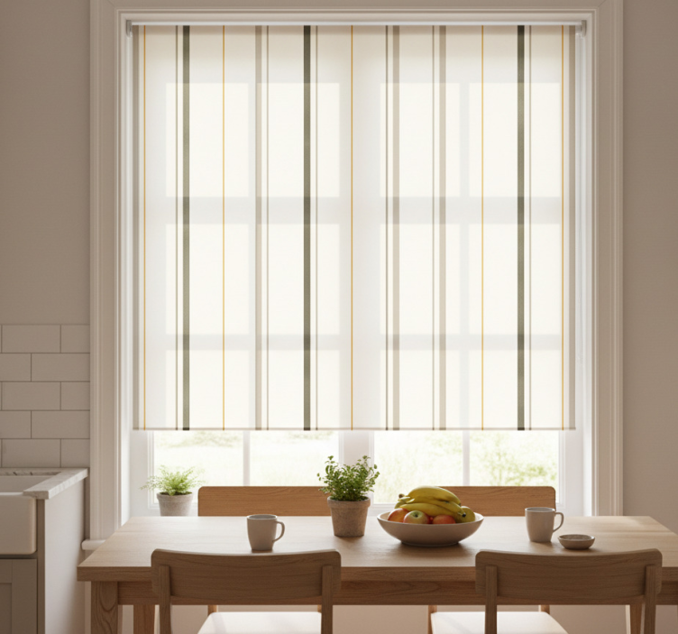 Rollo fenster küche mit beigen vertikalen streifen