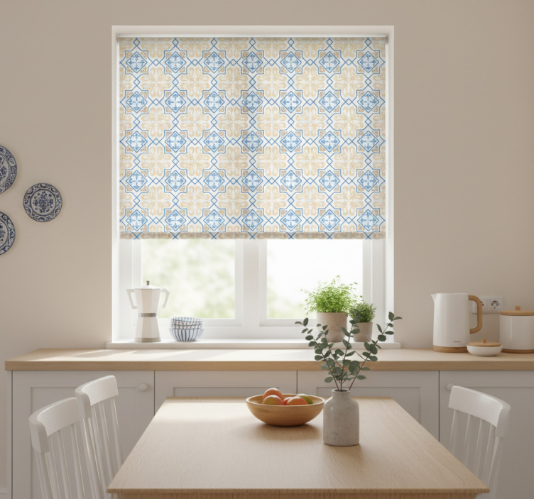 Rollo fenster küche mit blauem portugiesischem fliesenmuster