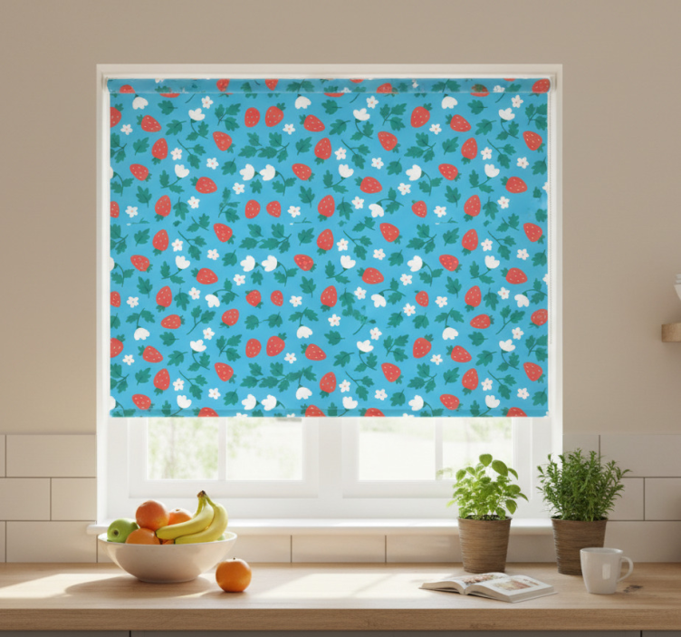 Rollo fenster küche mit buntem obst und blumenmuster