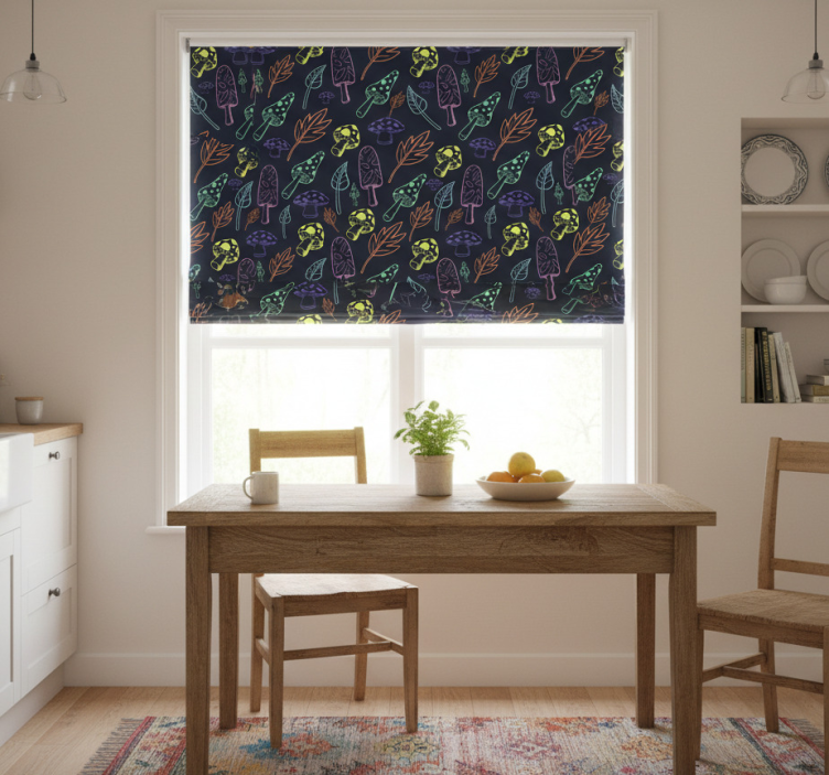 Rollo fenster küche mit buntem pilzmuster