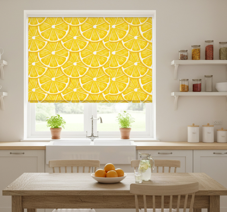 Rollo fenster küche mit citrus-scheiben-motiv
